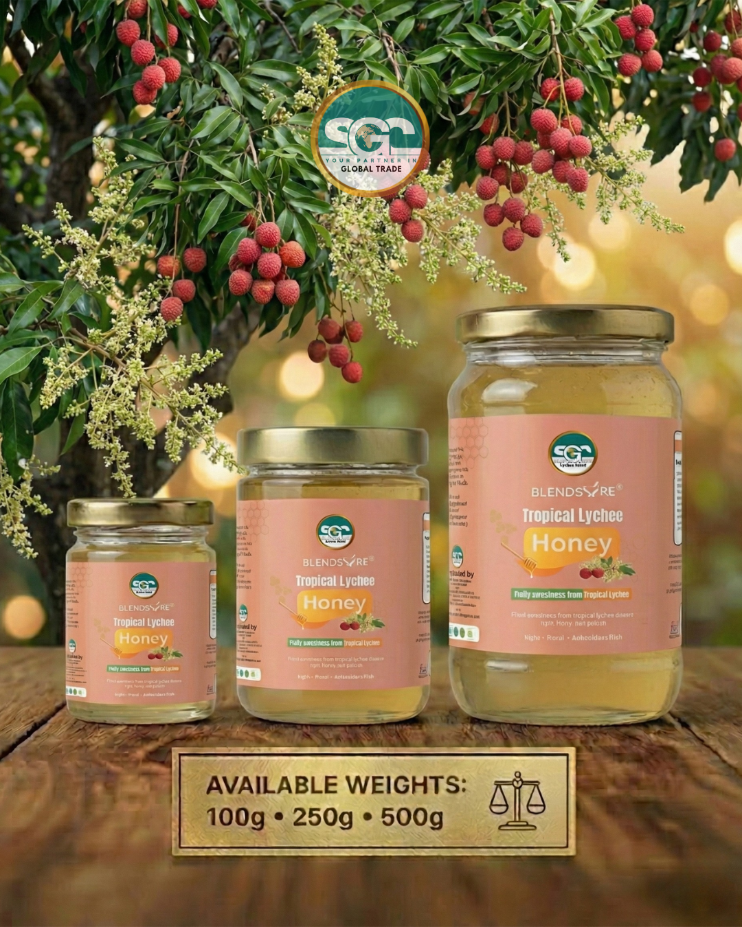 Blendsure Tropical Lychee Honey is harvested from fruitful Lychee orchards , creating a tropical delight with a light, smooth texture. It possesses a delicate, fruity sweetness and is naturally rich in antioxidants.