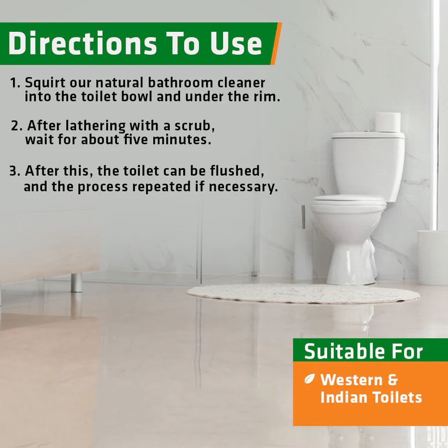 100% herbal, biodegradable toilet cleaner formulated with lemon oil, coconut-based surfactants, and soap nut extract. Effectively tackles germs, hard stains, calcification, and odors gently yet powerfully while leaving behind a refreshing lemon scent. Safe for use on Western and Indian toilets; cruelty-free, acid-free
