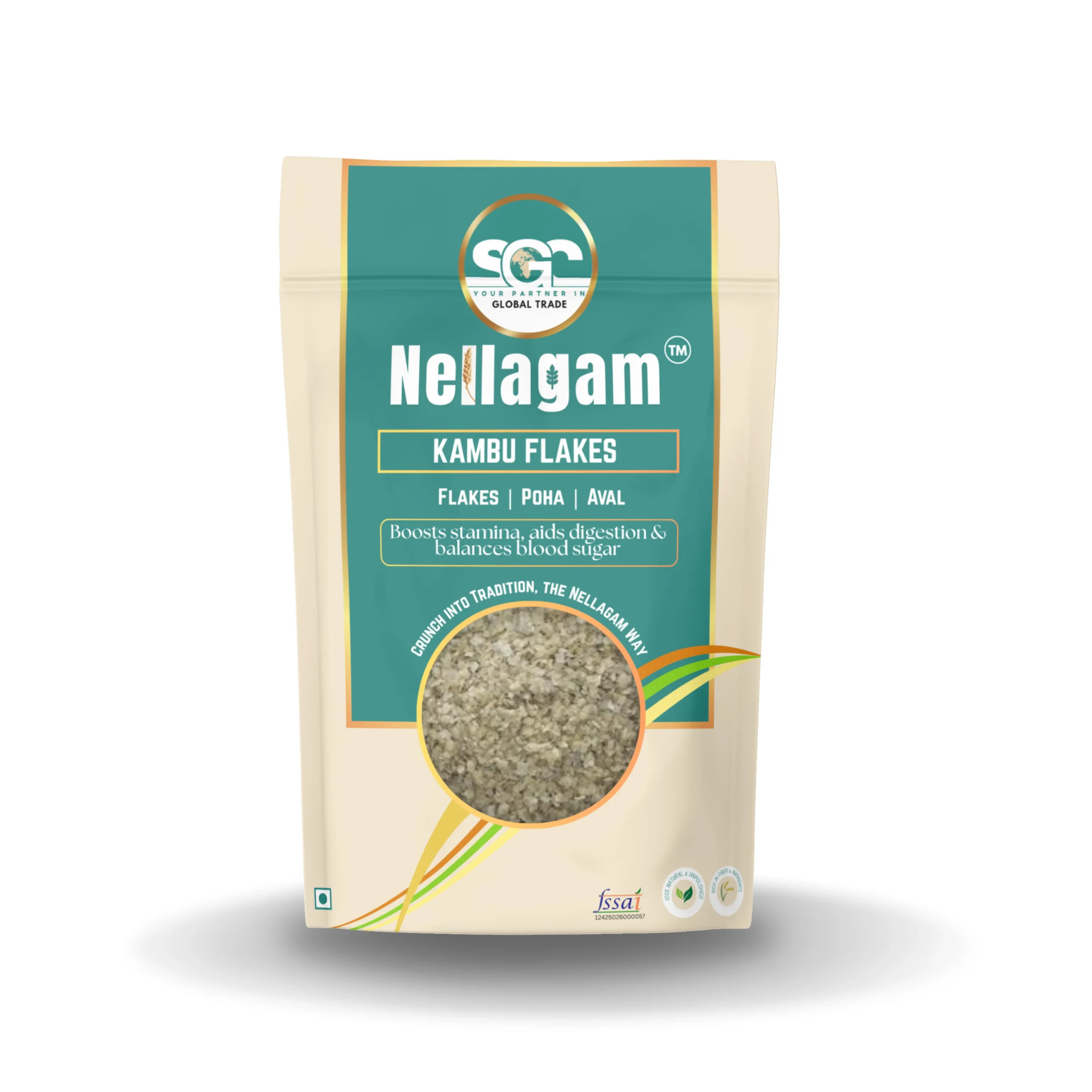 Kambu Flakes are nutrient-rich, energy-boosting flakes made from traditional pearl millet. Naturally gluten-free and high in iron, fiber, and complex carbohydrates, they support stamina, digestion, and blood sugar control. Light yet filling, Kambu Flakes are ideal for active lifestyles and diabetic-friendly diets. Their mildly nutty taste and quick-cooking nature make them perfect for both sweet and savory dishes. Rooted in traditional wellness, these wholesome flakes deliver clean, sustained energy throughout your day.