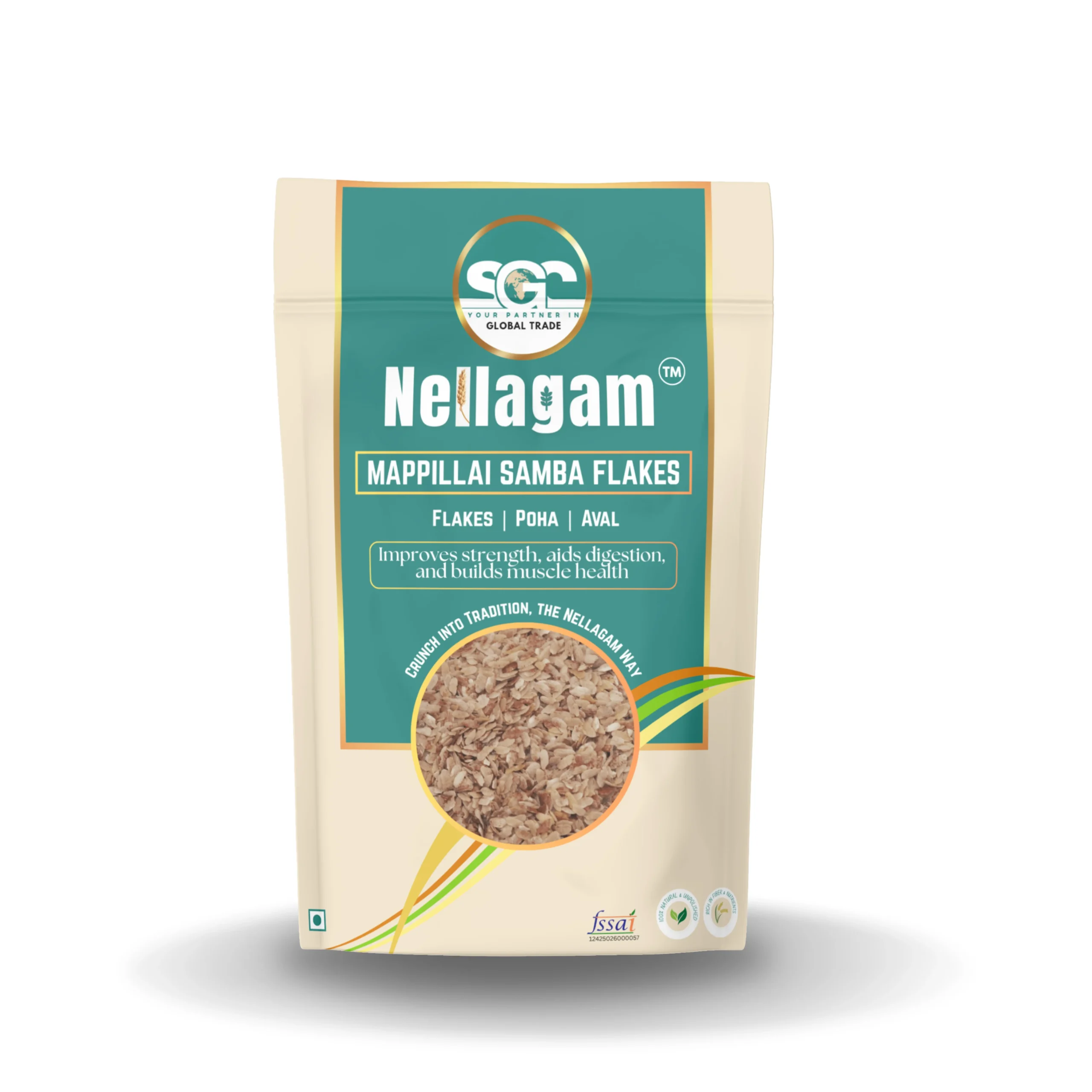 Nellagam mapillai Samba Rice Flakes capture the authentic flavor and time-honored nutrition of traditional Mapillai Samba Rice. Rich in iron, zinc, protein, and fiber, these nutrient-dense flakes boost hemoglobin levels, enhance muscle strength, and build stamina, while their high antioxidant content supports heart health and combats oxidative stress. With a low glycemic index that aids in blood sugar regulation and digestive health, they offer a balanced, energy-boosting option perfect for quick meals, making each serving a comprehensive step toward overall wellness.