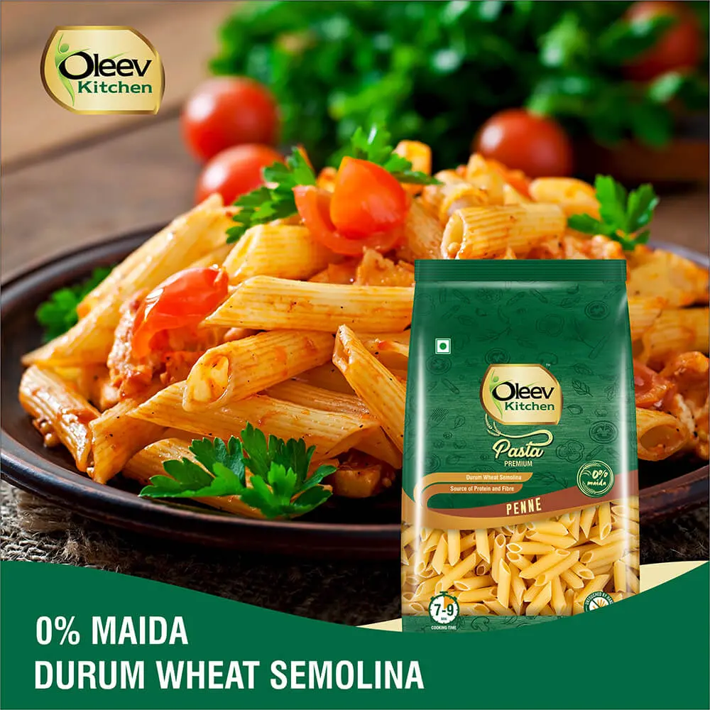 Made from 100% durum wheat semolina, this penne pasta is completely free of maida and cholesterol, making it a wholesome and nutritious meal choice. Rich in both protein and dietary fiber, it keeps you satisfied longer. Perfectly suited for creamy sauces, pesto, tomato-basil combinations, or arrabiata—it cooks beautifully “al dente” every time. Completely vegan and trans-fat free, it’s your go-to for a health-forward yet delicious pasta experience.